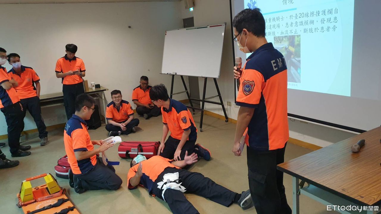 此次救護繼續教育訓練,除了以書面簡報講解授課,也實際操作包紮急救等流程,同時消防局也十分重視救災人員健康,特別與台南市菁英扶輪社合作,安排至各大隊進行胸部X光篩檢,以期及早發現所屬人員肺部是否有健康危害風險,降低同仁因執勤救災造成的健康風險。