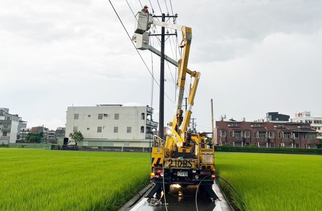 ▲今天凌晨因雷擊造成桃園市南區多處停電,台電工程人員搶修中。(圖/台電公司桃園營業處提供)