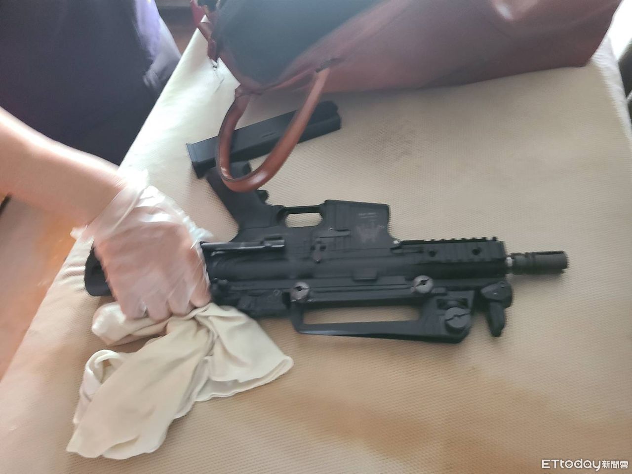 ▲雲林、嘉義警方專案小組查獲改造槍械工廠及改造衝鋒槍1支等槍彈,其中有黑幫的最愛俗稱「黑蜘蛛」M4步槍。(圖/記者蔡佩旻翻攝,下同)