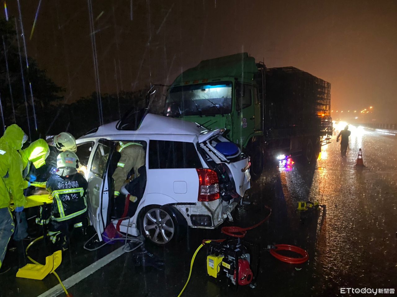 ▲國道1號曾發生小客車打滑遭大貨車撞上,釀成2死。(圖/記者陳凱力翻攝)