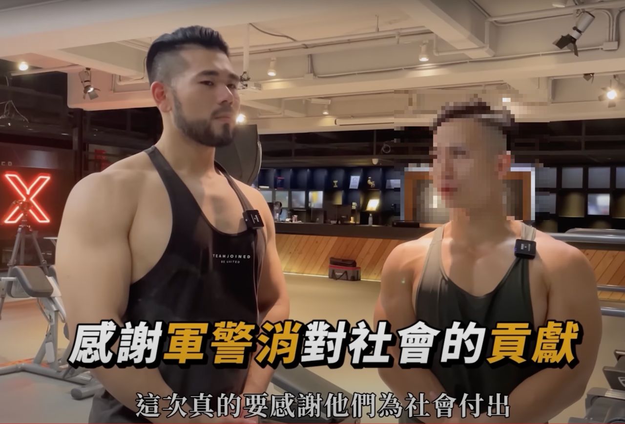 ▲朱姓男子提及警察、軍警消很辛苦,感謝他們的辛苦。(圖/翻攝健身網紅Peeta葛格)