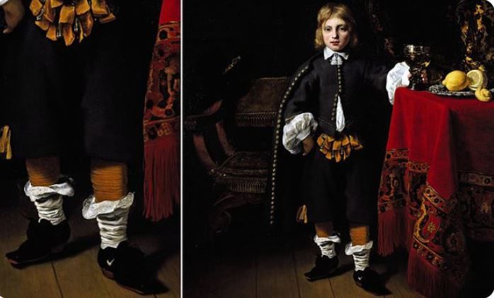 據《每日郵報》報導,英國57歲婦女費歐娜(Fiona Foskett)和23歲女兒荷莉(Holly),日前到倫敦美術館參觀,在欣賞一幅來自17世紀的肖像畫時,發現畫中身著黑色斗篷外套、拿著高腳杯的的8歲貴族男童,腳上竟穿著有著「白色NIKE勾勾」的運動鞋。