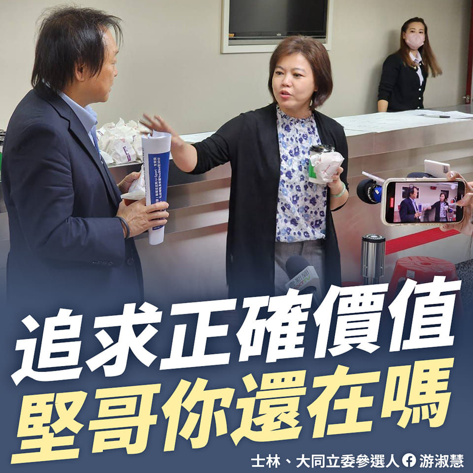 游淑慧大嘆,結果已經被提名為黨候選人的王世堅,卻看不到勇氣、聽不到真話。因此,她要再次向王世堅喊話,黑道治國和詐騙毀民,都是超越政黨之分的惡,「一起站出來挖出這些惡魔,追求正確的價值吧!」