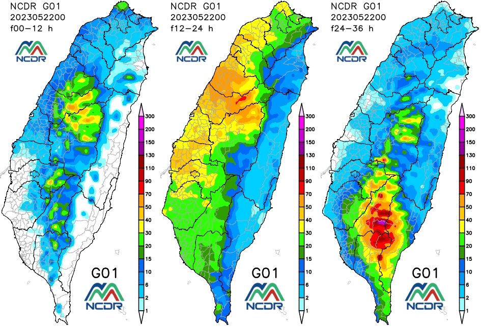 ▲今晚到明晨是雨勢最強時候 。(圖/NCDR、中央氣象局)
