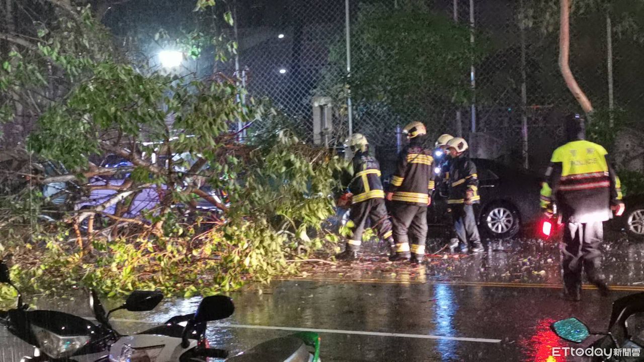 此外,北市消防局22日晚間10點54分收到另一件事故通報,北投區榮華一路15巷靠近堤防邊有路樹倒塌,樹木壓到路邊停放的2輛轎車,所幸無人受傷,公園處目前已派人前往處理。