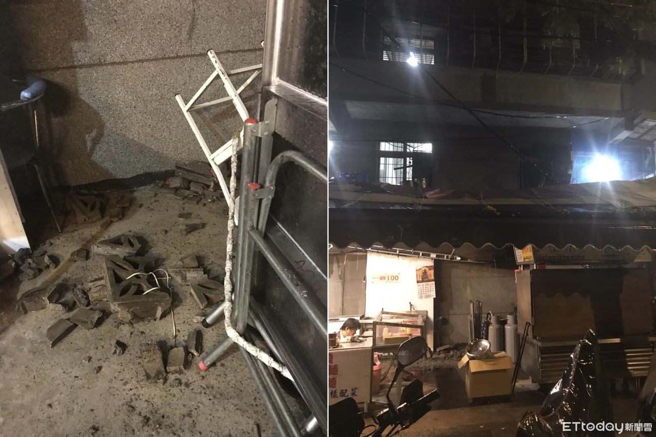 日新里里長吳信坪22日晚間發布「緊急通知」,表示由於風雨勢過大導致裕生路84巷口2樓外牆倒塌,大片磚瓦砸落地面,「經過的民眾,敬請小心注意」。