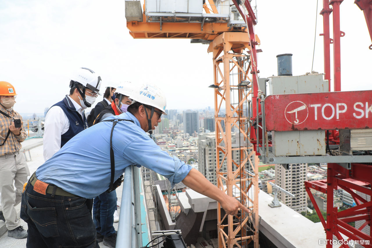 都發局今日協同台中市結構技師公會、職安署中區職安中心、台中勞檢處相關機關會同興富發文心愛悅建案起、承、監造人勘查頂樓塔吊(拆除機)殘存吊臂安全性,經勘查認為現場應有防颱安全措施。