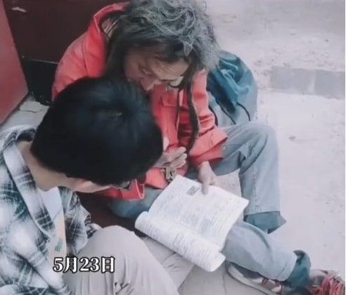 影片中還能看到,學生們就和大叔一起坐在地上,仔細聽著他講解,據悉,大叔每天在路邊輔導學生,身上帶着一條紅毯,走到哪就睡到哪。