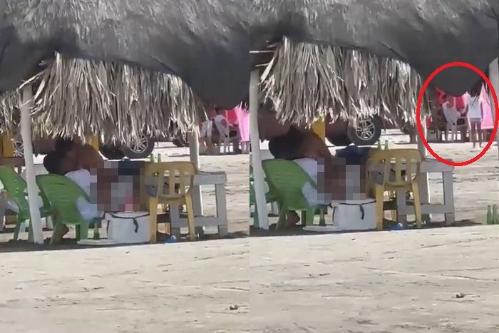 哥倫比亞一處親子沙灘驚見激烈活春宮,有遊客目擊一對男女子遮陽棚下忘情扭動。從曝光的畫面可以看到,女子腰部以下赤裸跨坐在男子身上,而男子則雙手扶住女方臀部不斷前後擺動,更離譜的是,這對男女的不遠處就有孩童在嬉戲。