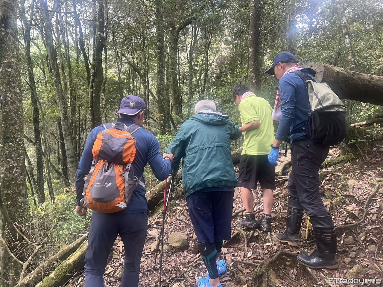 ▲60歲鄭男攀爬屋我尾山主峰,卻不慎扭傷腳,導致無法行走,最後由搜救人員協助下山。(圖/記者哈勇嘎澳翻攝,下同)