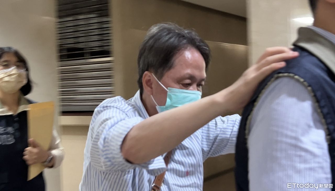 ▲前法官高明哲涉嫌為人行賄法官舊識,遭移送北檢時,搭著調察官的肩背躲避媒體拍攝。(圖/記者劉昌松攝)