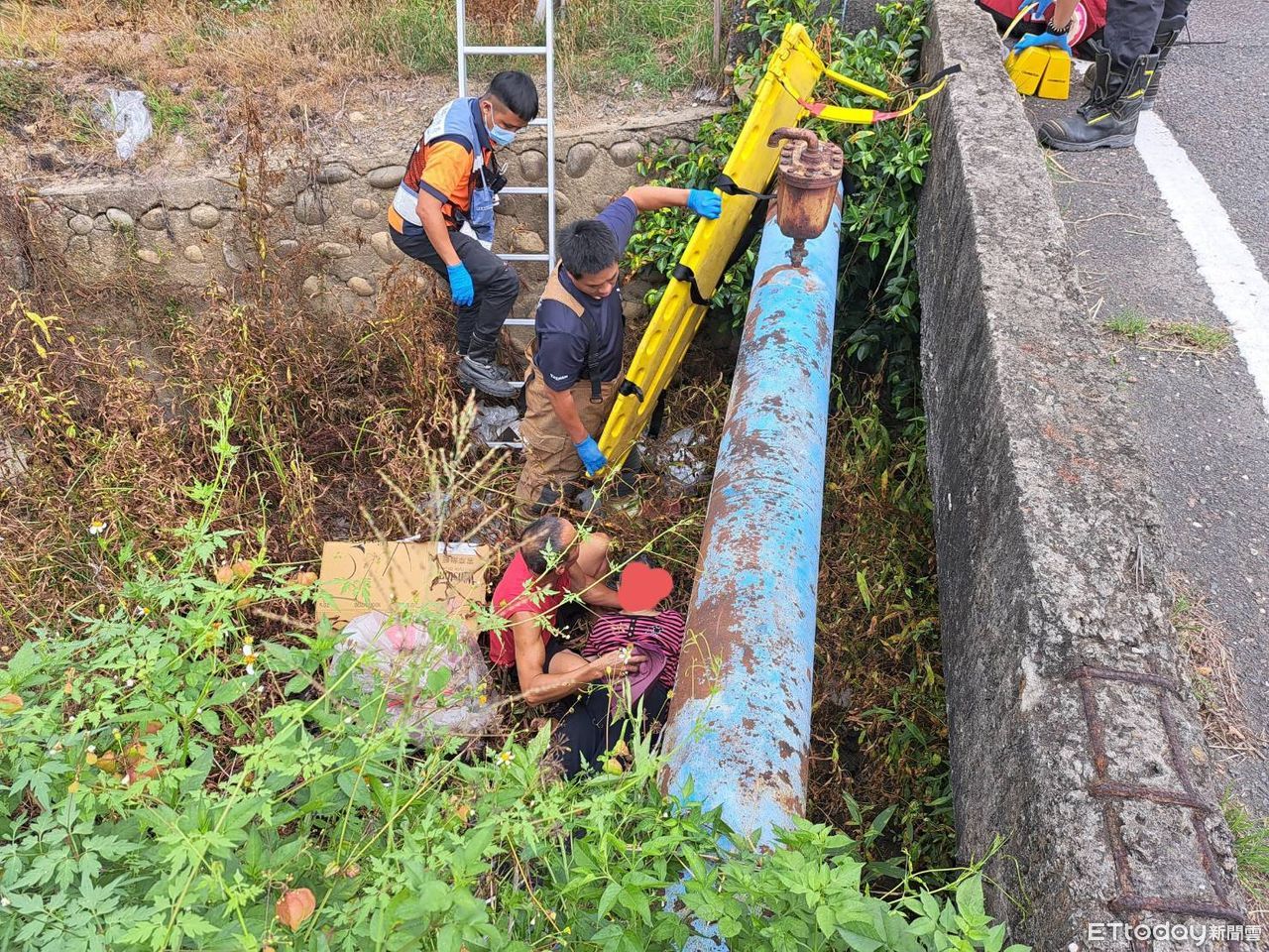 到場消防人員立即架梯協助該名傷者脫困,該名傷者意識不清且血壓低,救護人員立即給予上背板、上頸圈保護頸椎、因傷者血壓低立即施打IV給予生理食鹽水,後將傷者送至柳營奇美醫院救治,目前住院觀察中。相關肇事原因及責任正由警方調查處理中。