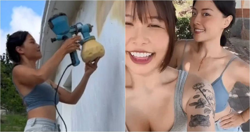 ▲屏東一家早午餐店,最近找來設計公司幫忙進行牆面裝修時,來施工的居然一對火辣的「仙女工班」。(圖/翻攝自記者新聞網)