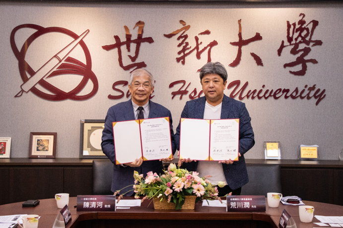 ▲ 世新大學校長陳清河(左)與台灣橫浜八景島董事長荒川潤(右)簽署產學策略聯盟。(圖/世新大學提供)