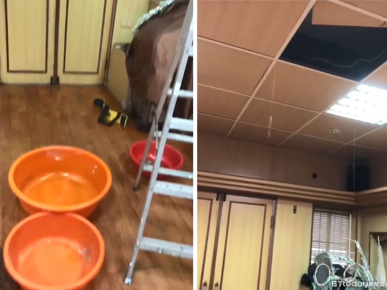 由於昨日高雄下起豪大雨,潘先生表示,當時好險他在家,不然家裡恐怕就要淹水了,現在只能先將臉盆放在地面,以防再有漏水情況。