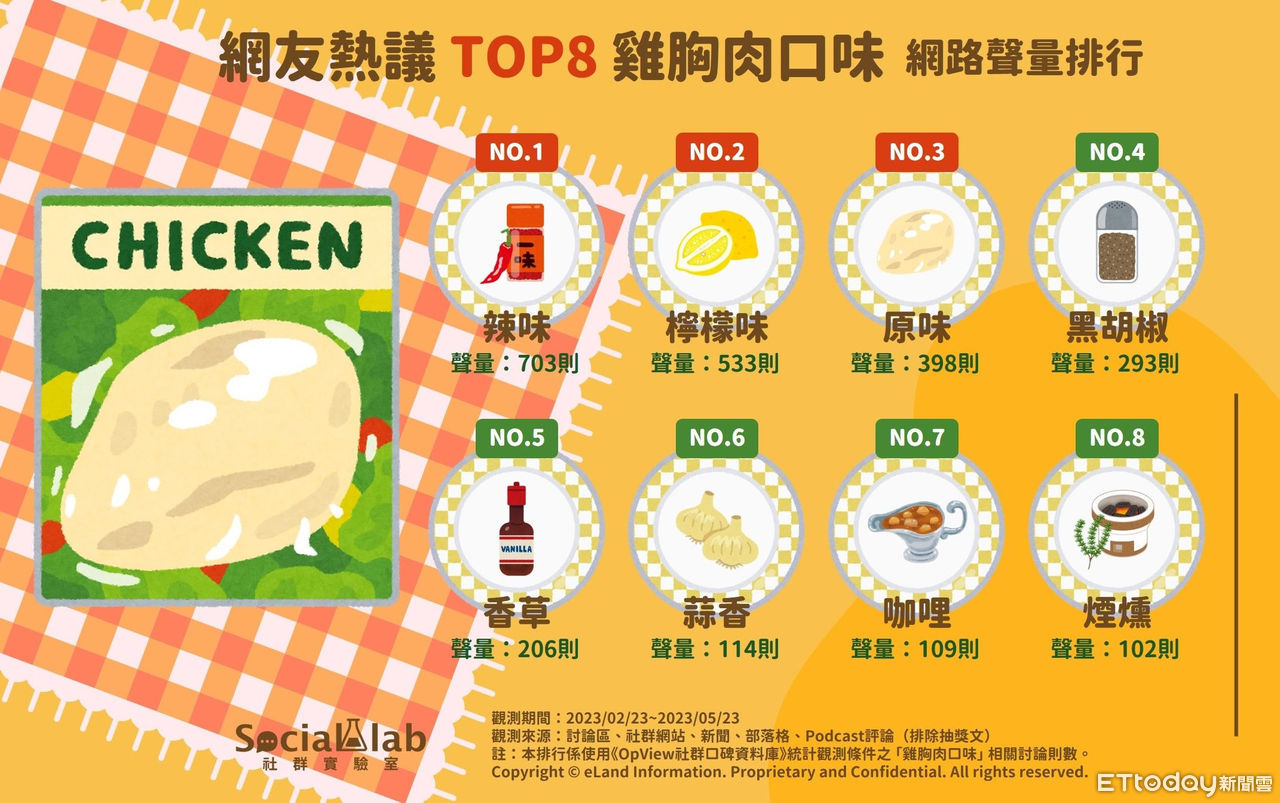 ▲網友熱議Top 8雞胸肉口味。(圖/Social Lab社群實驗室提供)
