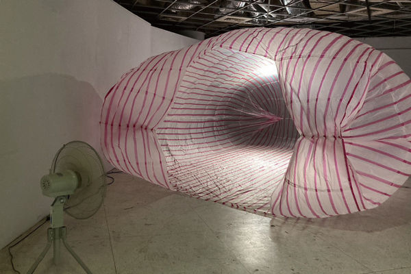 ▲林琦絢的複合媒材裝置《日常的塑膠袋系列》。(圖/元智提供)