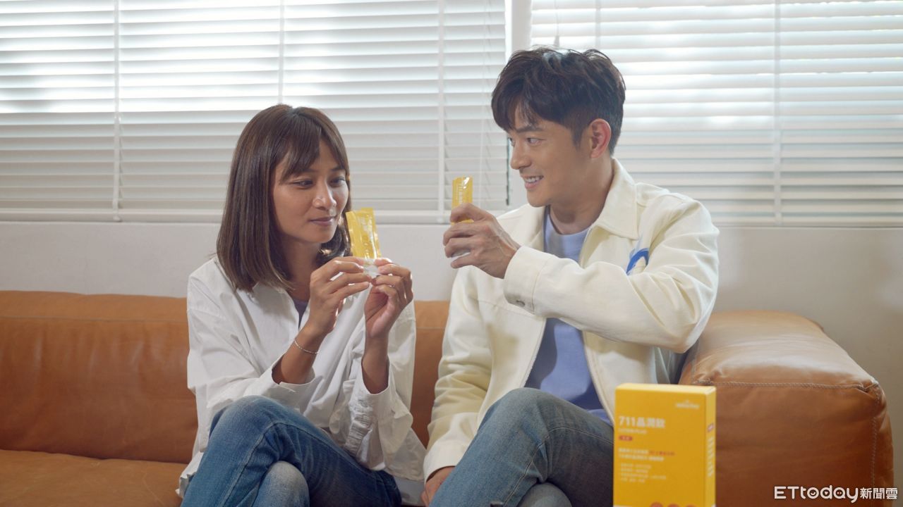 ▲宥勝與妻慈惠找醫師營養師開發「711晶潤飲」葉黃素保健食品。(圖/記者姜國輝攝)