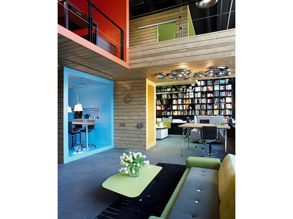 建築師Megabudka將傳統室內設計圖活脫脫搬進辦公室中,從複雜的設計圖稿中解脫,這裡不僅是展示及辦公的地方,整體的設計和功能同時也稱得上是藝術空間,能在如此齊全設備的中心工作,相信室內設計師們也擁有源源不絕的靈感來源!