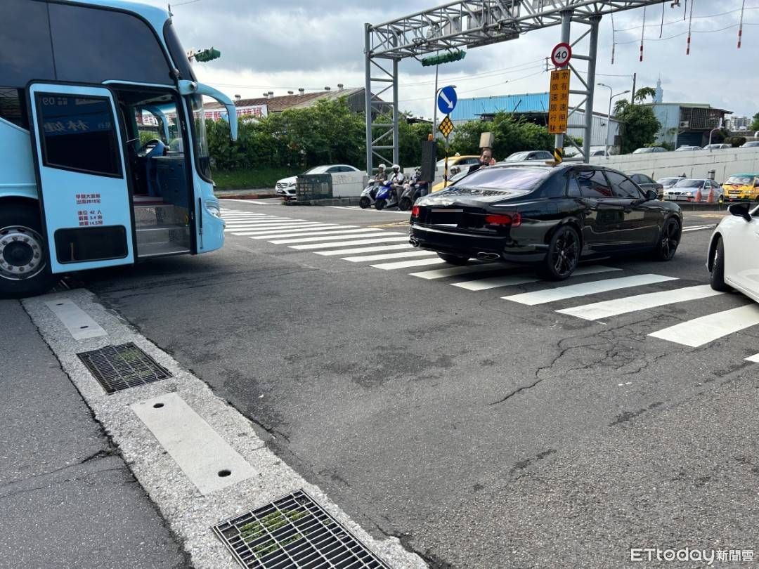 ▲台北市軍用巴士與賓利發生碰撞。(圖/記者邱中岳翻攝,下同)