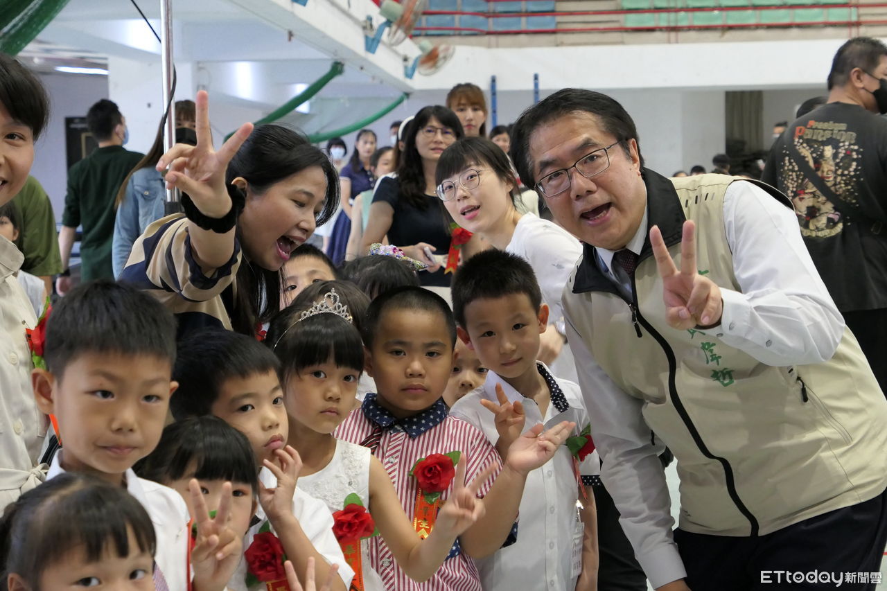 ▲台南市長黃偉哲出席第四幼兒園的畢業典禮,讓幼兒和家長又驚又喜。(圖/記者林悅翻攝,下同)