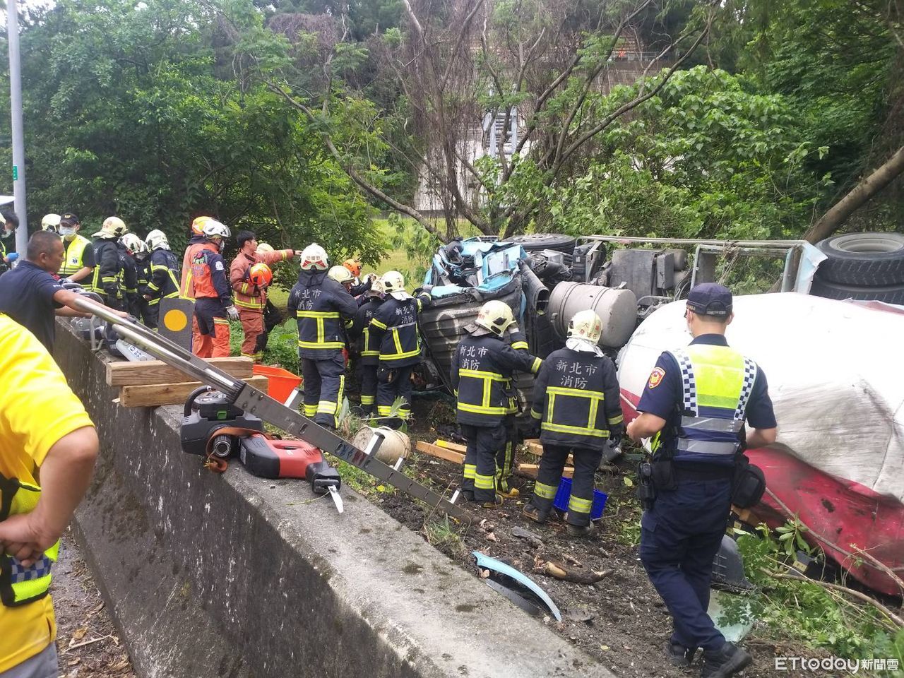 警方指出,27歲王姓女子駕駛水泥預拌車,行駛中和交流道北向出口時,不明原因自撞外側護欄衝出路肩翻覆而肇事。本件事故暫時封閉外側車道及路肩,並造成該駕駛受困車內且意識不清搶救中。本案駕駛人酒駕情形待釐清,後續依規定調查處理。