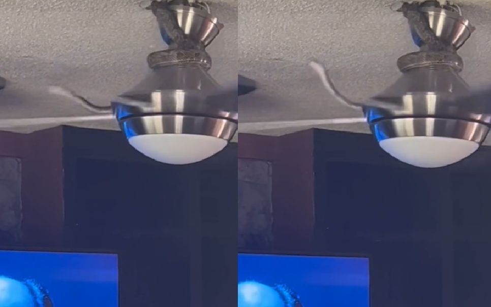 女屋主露琵塔日前在TikTok上分享一段影片,影片中可看到,一條巨蛇竟然從天花板縫隙鑽進家中,讓她非常害怕,然而蛇後來試圖爬到吊扇上時,卻被不斷旋轉的葉片瘋狂巴頭,畫面突然變得滑稽。