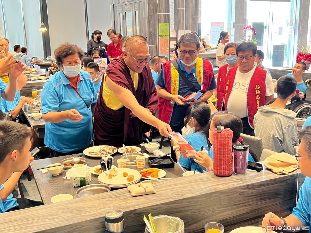 ▲台南市私立噶瑪噶居寺蔣揚社會福利慈善基金會街友之家,舉辦「滿願聚餐」,邀街友、腦麻及脊髓損傷病友等弱勢團體共同享用美食,並贈送實用伴手禮,分送祝福與感受過節氣氛。(圖/記者林悅攝,下同)