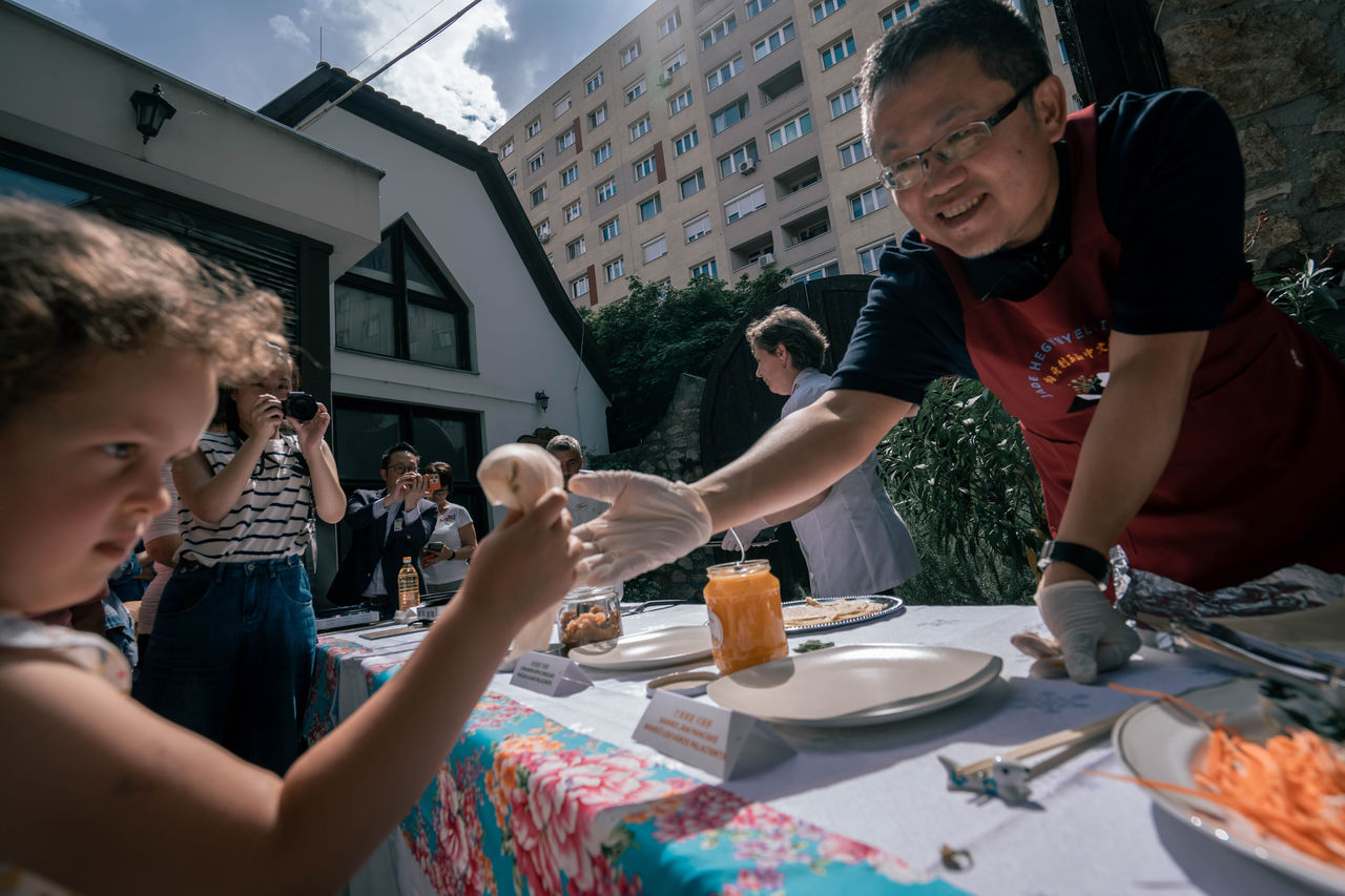 駐匈牙利代表劉世忠擁有好手藝,以「大使主廚」聞名,他用台灣潤餅與世界薄餅大賽冠軍Hanna Erdős的匈牙利薄餅比拚,布達佩斯副市長安妮特•博斯Dr. Anett Bősz也特別蒞臨現場共襄盛舉。