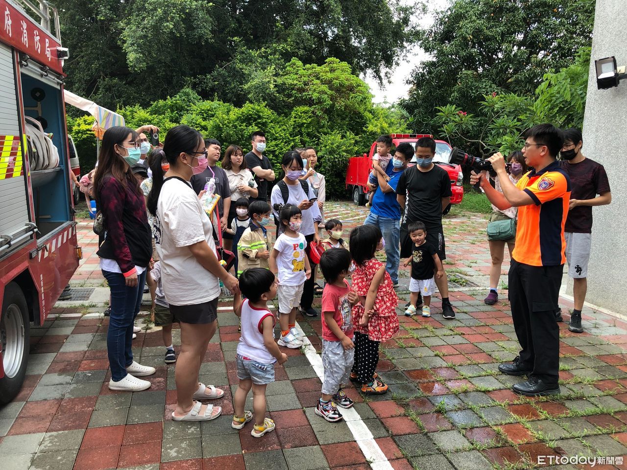 ▲台南市鹽水區親子悠遊館親子團,至台南市消防局一大隊鹽水消防分隊參觀,並體驗「我是小小消防員」等活動。(圖/記者林悅翻攝,下同)