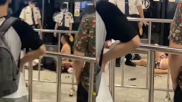 根據網友拍攝的影片顯示,地鐵站內一男子上身赤裸,下身僅穿著一條內褲,旁邊一女性工作人員躺在地上,後警務人員將該女子拉起,男子躺在地上不停地叫喊,路過的不少乘客發出驚訝聲,不知道發生了何事。