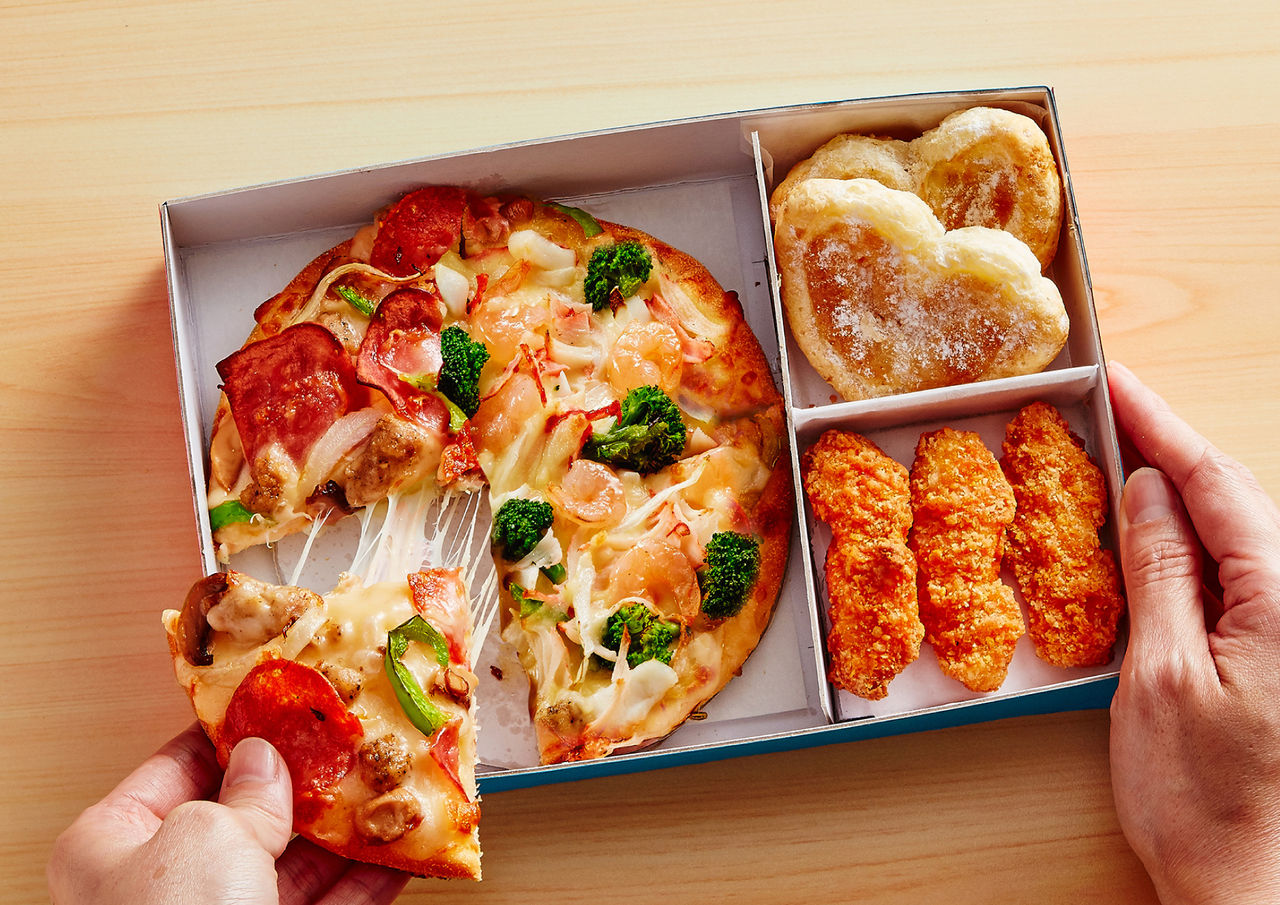 ▲達美樂「MyBOX」披薩便當升級,推出獨家雙拼口味。(圖/業者提供)