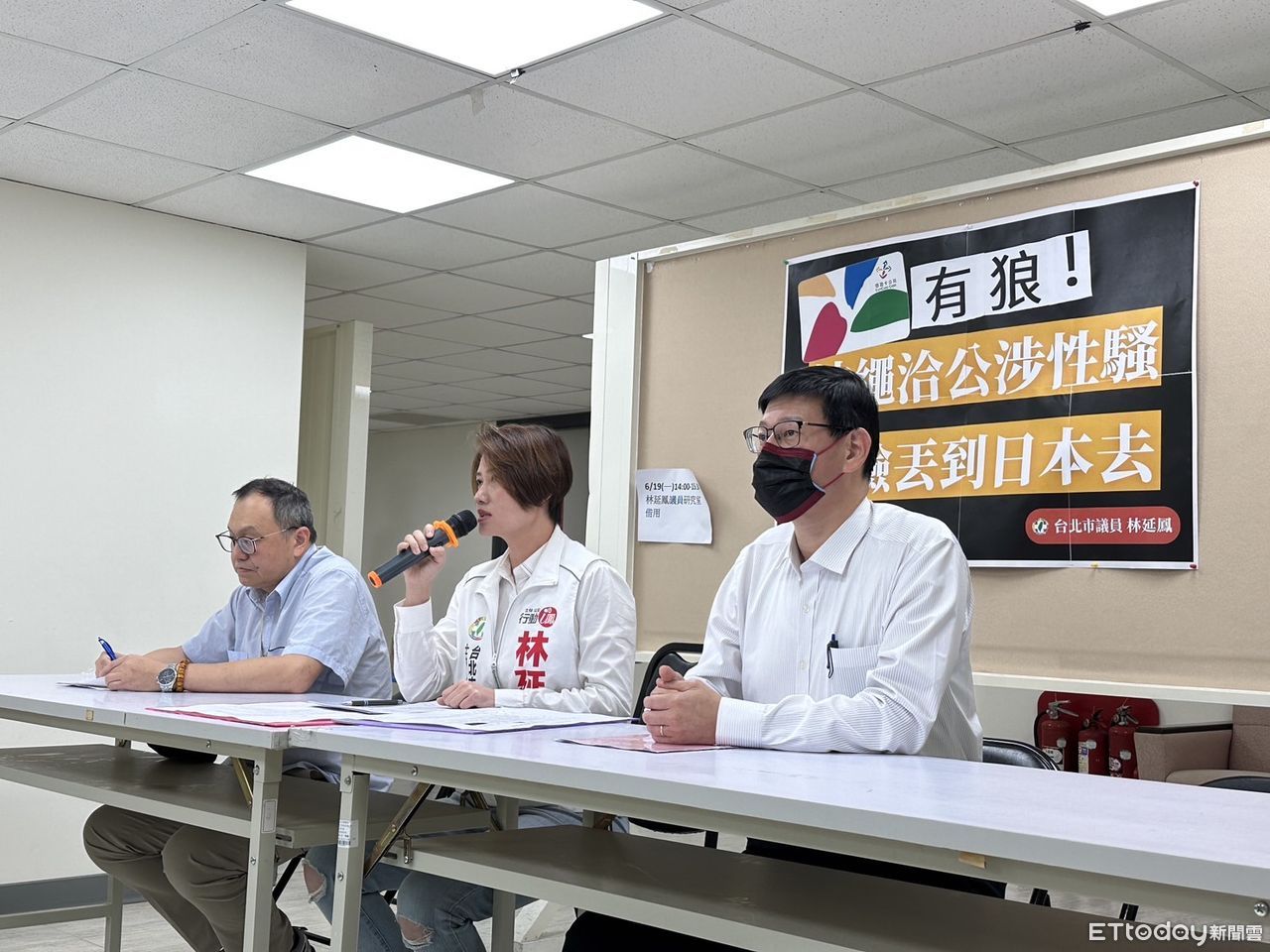 ▲議員林延鳳「悠遊卡有狼:沖繩洽公涉性騷,丟臉丟到日本去!」記者會。(圖/記者袁茵攝)