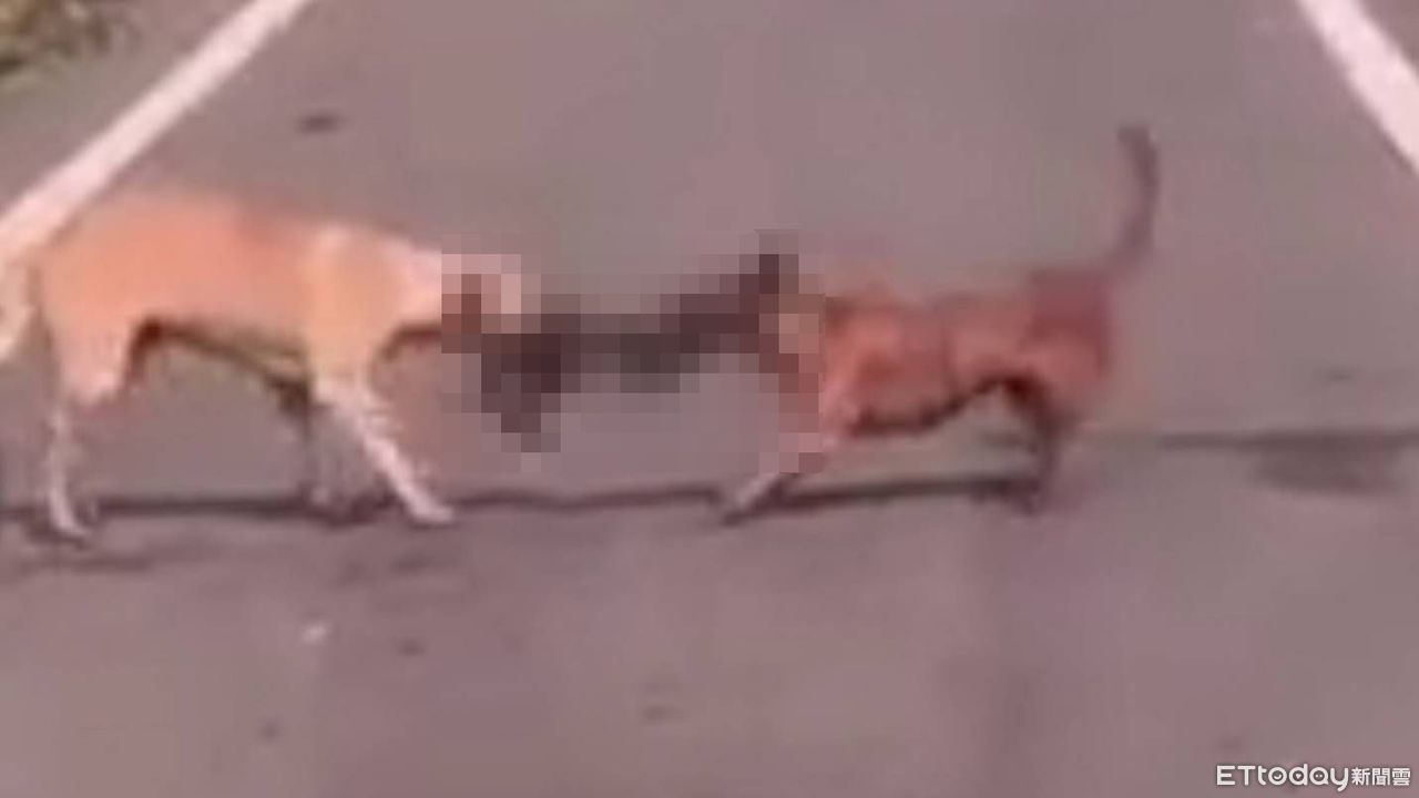 驚悚!彰化縣和美鎮今天上午有民眾發現2隻大狗盤據在太平路的馬路上,正張開大嘴緊咬住小黑貓的頭,互不相讓的來回撕咬,貓咪痛得昏厥無力反駁,鮮血還不停流出,狗在搶食中還不停發出低吼的聲音,民眾看到這殘忍恐怖的一幕,喝斥把狗趕走,但貓咪早已頭骨破裂,眼睛突出氣絕身亡。