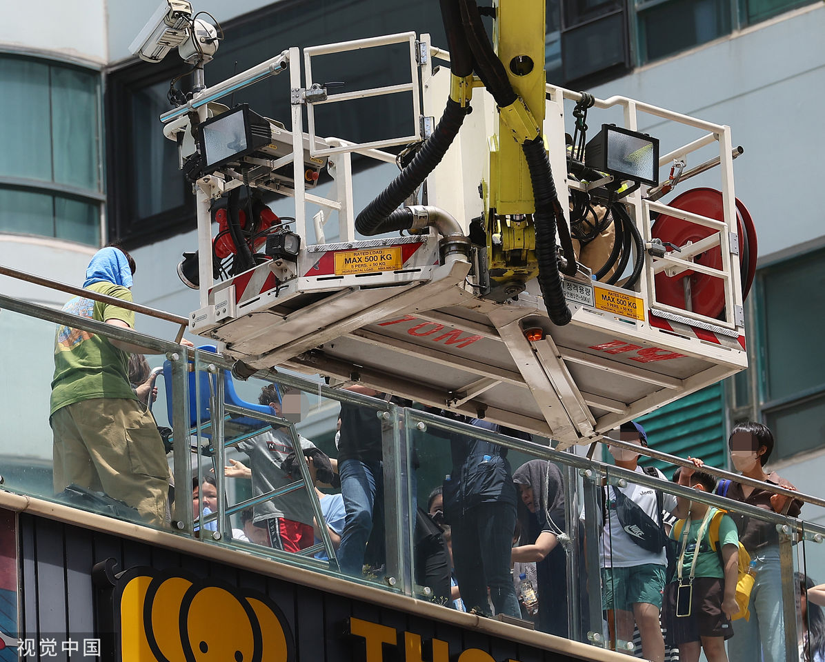 ▲南韓釜山海雲台某30層樓飯店發生火災,消防當局透過雲梯車疏散旅客。(圖/CFP)