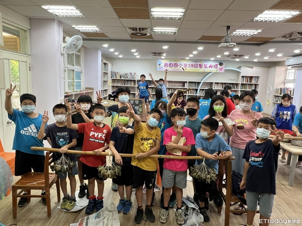 教育部指出,早在端午節前,香田國小這群小朋友,就開始跟著家長、老師與志工忙進忙出,親手刷洗粽葉、洗竹竿並布置場地等,等待一切就緒,就是學習如何將粽葉摺出漂亮的形狀、填料,並綁出一顆又一顆結實飽滿的粽子。