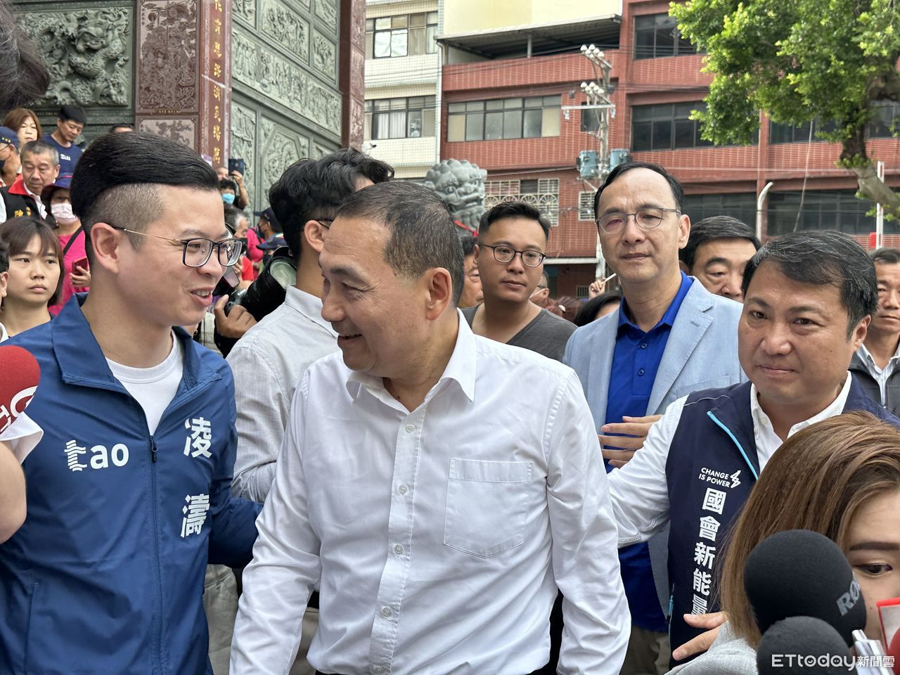 ▲朱立倫、侯友宜、張善政赴楊梅錫福宮參香 。(圖/記者崔至雲攝)