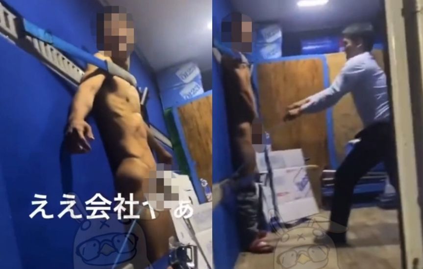 ▲被害人遭前輩扒光衣服,綑綁在貨車車廂內虐待。(圖/翻攝自推特)