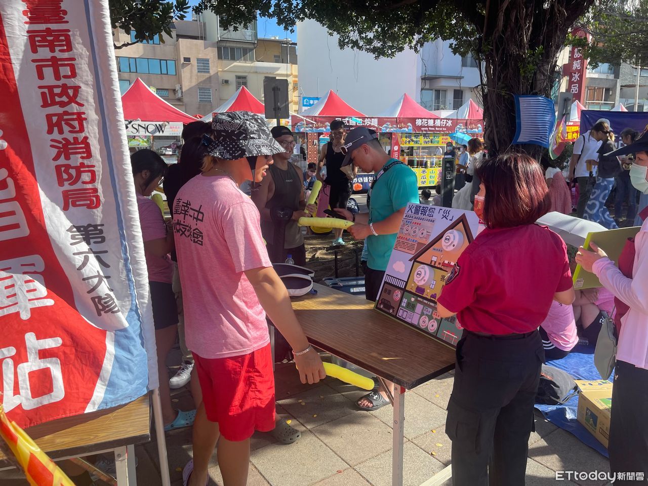 ▲台南市消防局第六大隊結合防火宣導隊,配合「2023台南市國際龍舟錦標賽」,擴大防火防溺宣導。(圖/記者林悅翻攝,下同)
