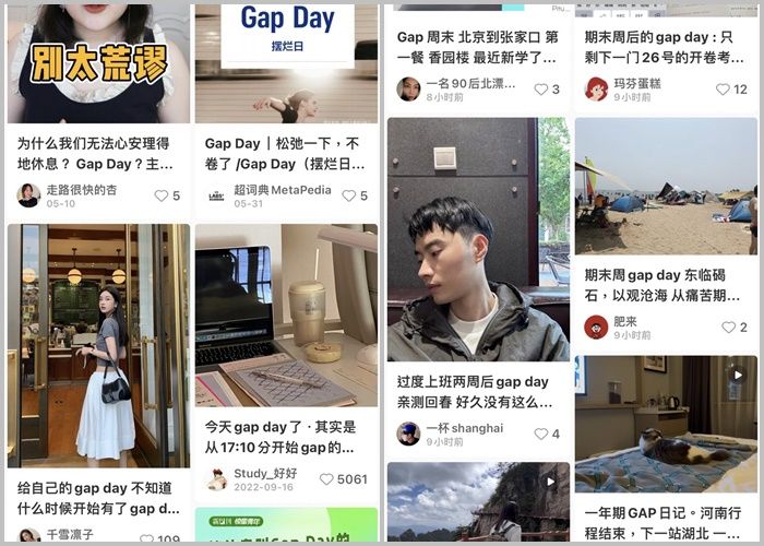 像李布果這樣在工作中面臨巨大壓力的年輕人,在社群平台發明了一種新的生活方式:Gap Day。