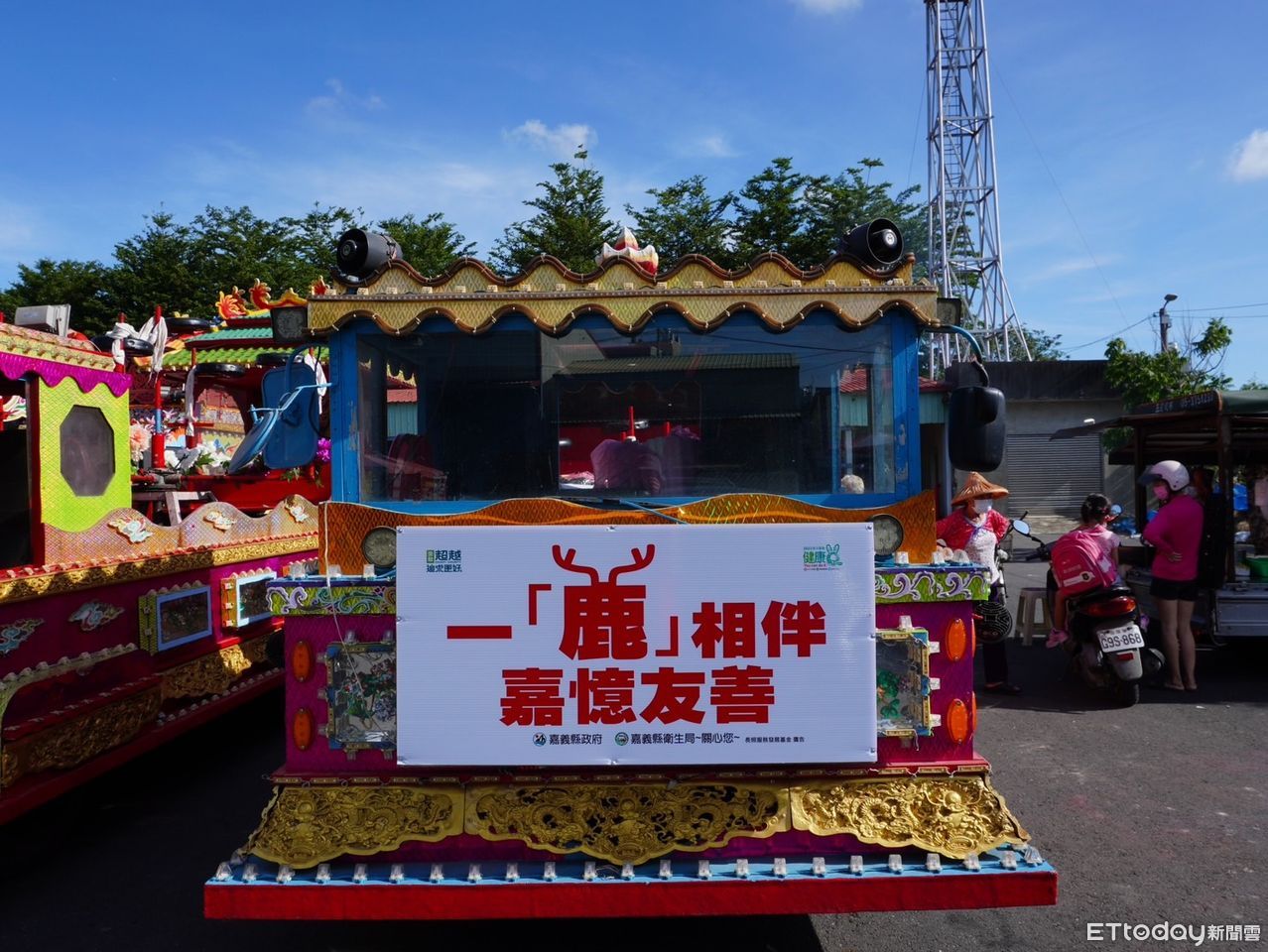 衛生局在鹿草圓山宮廟會發放失智友善三角令旗吊飾,可在令旗寫下姓名與電話,再將吊飾掛在長輩平時常用的枴杖、包包,一旦長輩迷路或走失,路過民眾即可循令旗資訊聯繫家人。除了發送吊飾外還安排藝閣車繞境宣導,讓更多民眾認識失智症,打造「一鹿相伴˙嘉憶友善」社區,共同守護鄰里間的失智長輩。