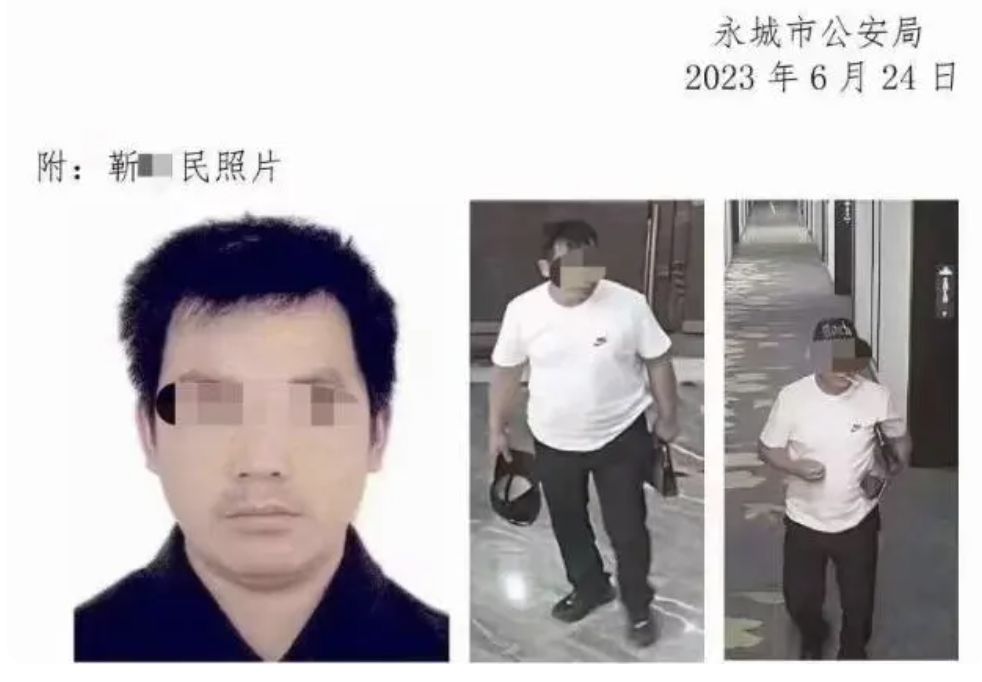《紅星新聞》報導,懸賞通告主要內容如下,2023年6月23日晚,永城市新城區發生一起重大刑事案件。經工作,靳某民具有重大作案嫌疑。靳某民 (男,漢族,1976年3月9日出生,戶籍地,河南省鄭州市)。嫌疑人身高170釐米(公分)左右,體態微胖,案發時身著白色短袖T恤,左胸口NIKE標誌,黑色休閒褲……。