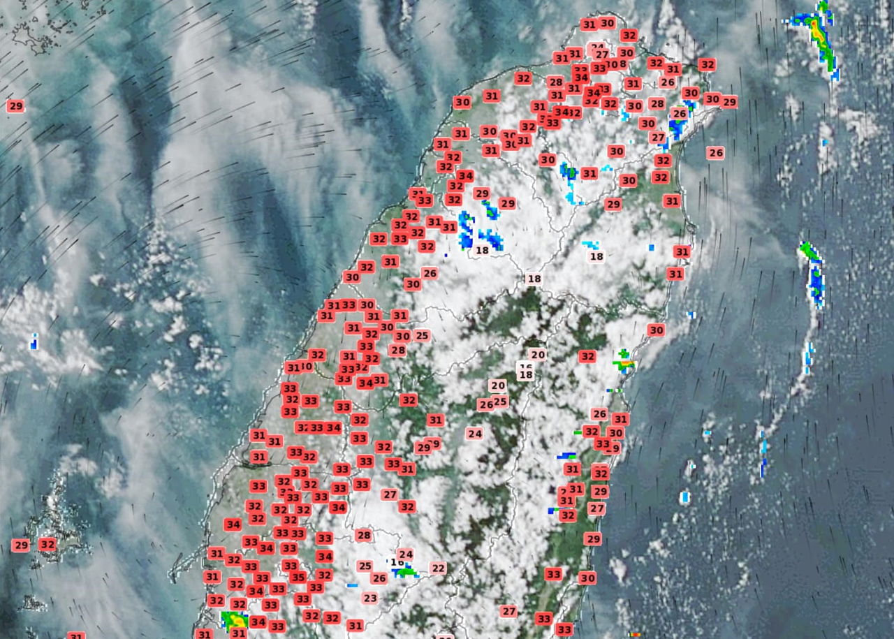 中央氣象局指出,預測今天(26日)各地高溫約31到35度,其中雲林、南高屏及花蓮縱谷有局部36度以上高溫發生機率,戶外活動應注意防曬,並多補充水分。