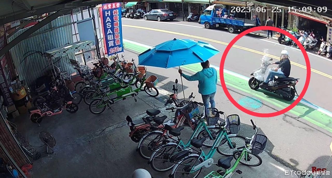 ▲台中一間自行車出租店昨日遭人潑灑不明液體,警方已鎖定可能嫌疑人。(圖/記者許權毅翻攝,下同)