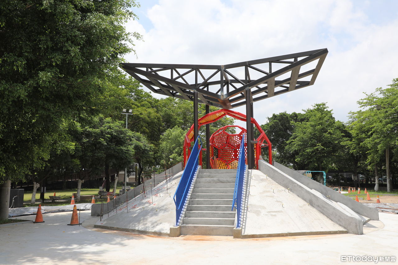 本次工程重點在於滿足各年齡層及族群使用,重點新設一處大型的兒童遊戲場,並設計蜻蜓造型的複合式大型遊具,配置各式多功能的共融及體健設施,打造「親子共融」、「多元參與」的遊憩空間。