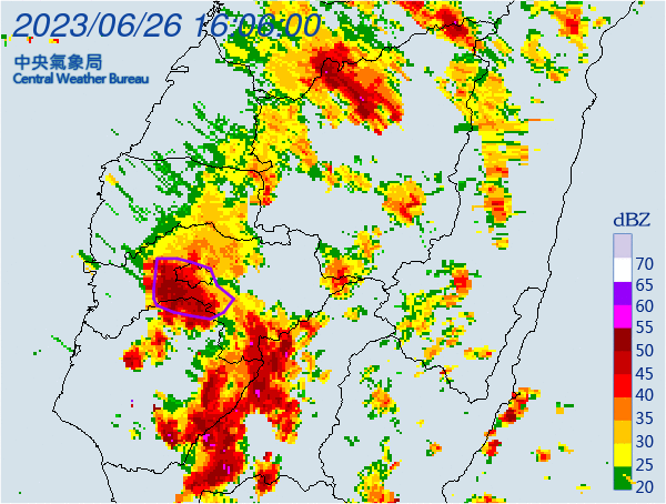 午後熱對流發展旺盛,中央氣象局發布大雨特報,另外嘉義市、嘉義縣、臺南市也出現大雷雨,氣象局同步發布大雷雨即時訊息,持續時間至17時15分。