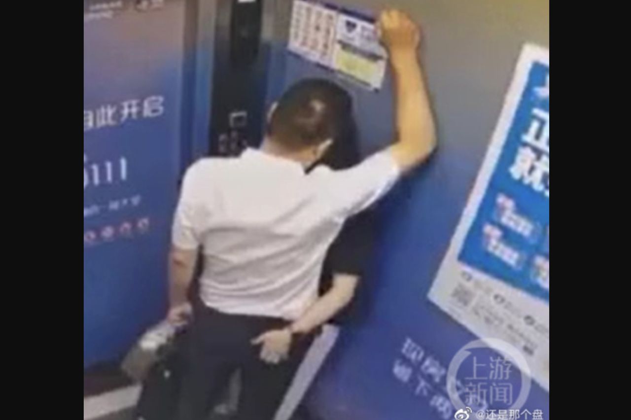 ▼楊種學在電梯內壁咚人妻。(圖/翻攝上游新聞)