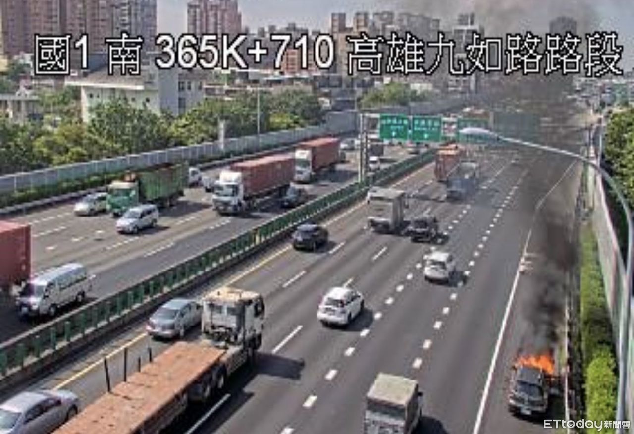 ▲國1高雄九如段火燒車。(圖/翻攝自高速公路1968)