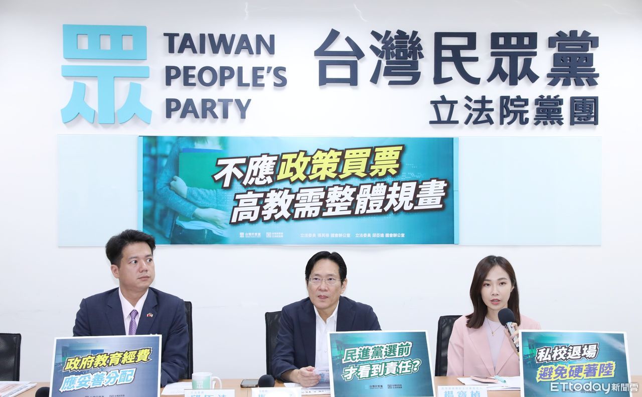 ▲台灣民眾黨立院黨團「不應盲目大撒幣 高教需總體規畫」記者會。(圖/記者屠惠剛攝)