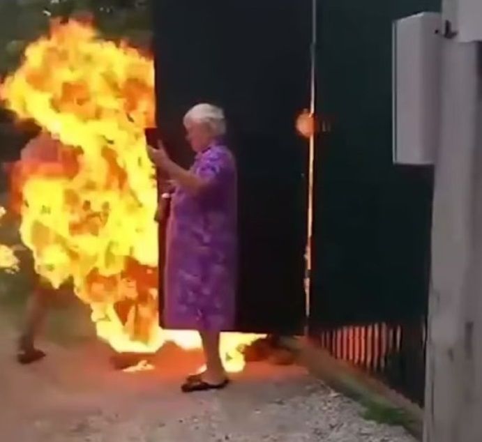 爭執過程中,鄰居企圖奪走火焰噴射器,嫌犯立刻「開火」,頓時冒出大團火焰。火焰吞噬鄰居全身,旁觀的眾人趕緊上前撲滅火勢並將他的衣服脫下,並澆水直到救護車抵達。